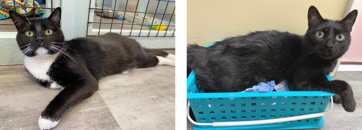With her medical issues now behind her, Kugel moved into our group room with the hopes of finding her forever family. Along the way, she developed a friendship with Rumpleteazer, a curious and lively kitty who came to us from the Stockton Animal Shelter in October.