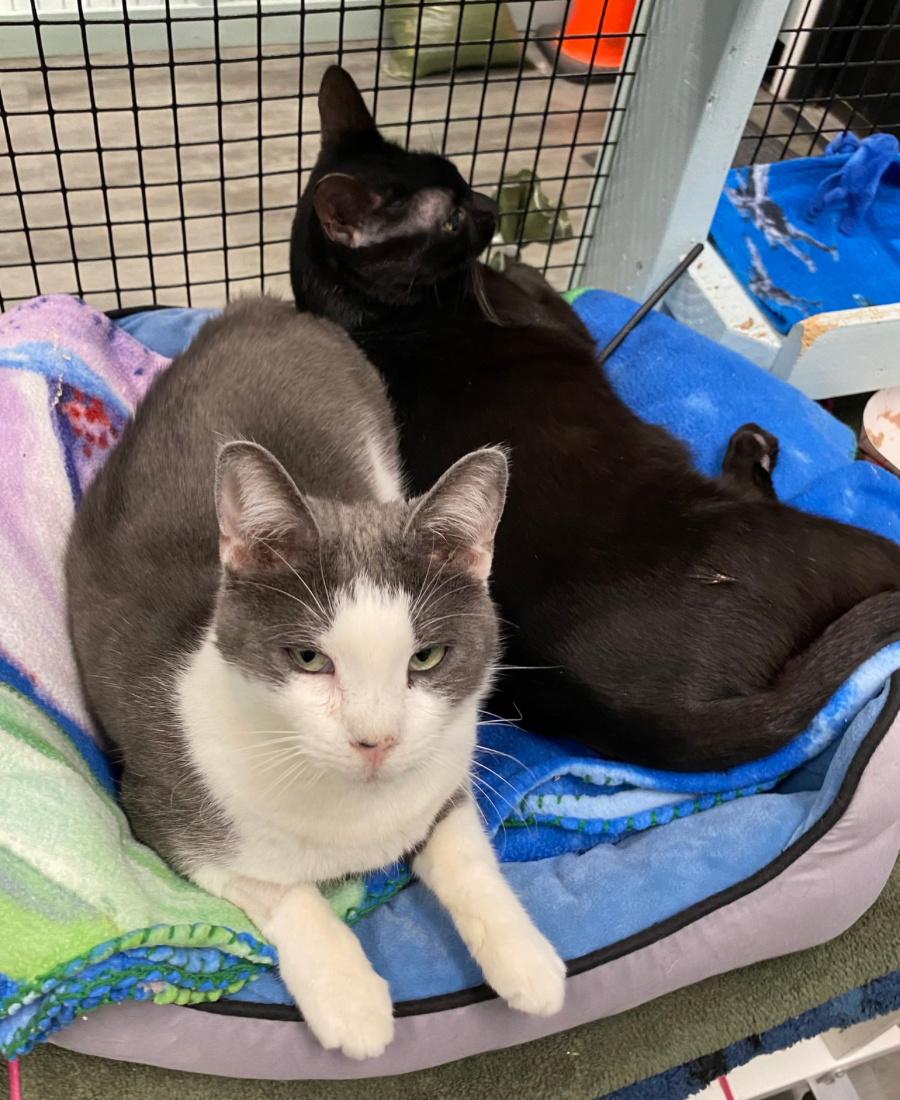 Kugel and Rumpleteazer loved to play with toy mice and chase each other around the room. Afterwards, they’d cuddle and bathe each other. Although they weren’t a bonded pair, we hoped they could remain together.