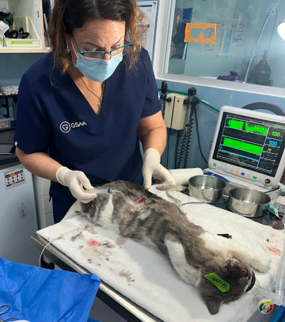 In recent weeks, we’ve seen a surge in the number of injured male cats coming into our care — like Hippo, pictured here during his surgery with Dr. Desai.