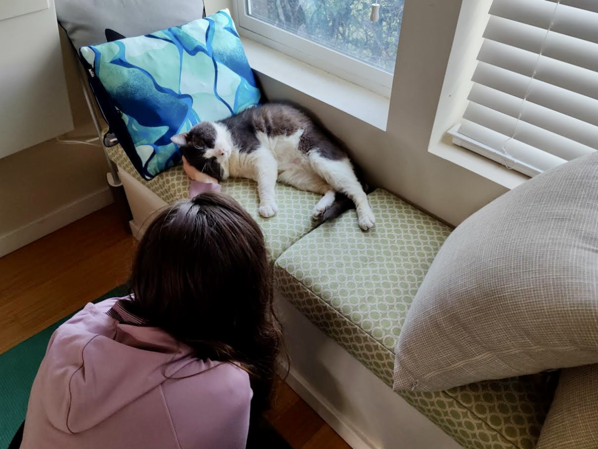 Winston had a tendency to nuzzle up against the door of his group room, hoping to catch the eye of one of our Adoption Center visitors. This strategy paid off, and earlier this month — almost nine weeks after arriving at Nine Lives — Winston finally found his perfect match.